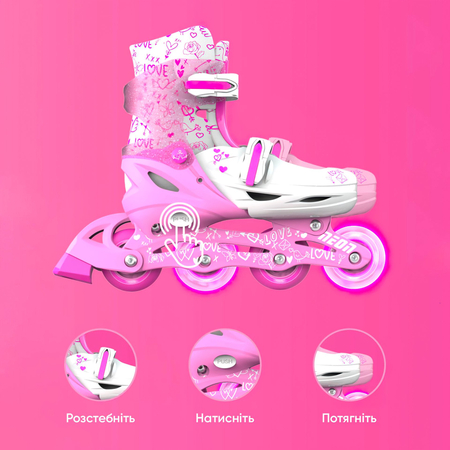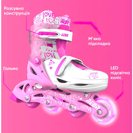 Роликові ковзани Neon Inline у розмірі 34-37 у кольорі рожевому - це стильний та яскравий аксесуар для активного відпочинку. Вони виготовлені з високоякісних матеріалів, які забезпечують комфорт і безпеку під час катання. Регульована конструкція дозволяє налаштувати розмір для зручного та безпечного використання. Ці ролики мають стильний дизайн і підходять для початківців та досвідчених ковзанярів. Насолоджуйтесь активним відпочинком на цих чудових рожевих роликах Neon Inline!