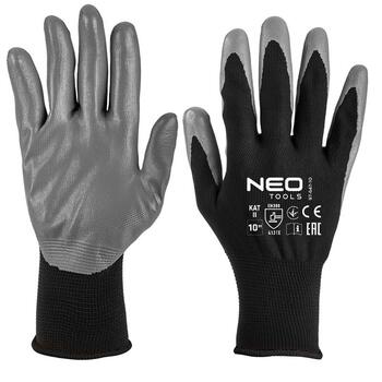 Рукавички робочі Neo Tools комплект 12шт, поліестер з нітриловим покриттям, р.11, сіро-чорний