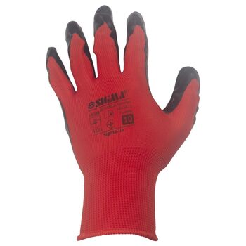 Рукавички трикотажні з частковим нітриловим покриттям р10 (червоно-чорні манжет) КРАТНО 12 парам SIGMA (9443471)