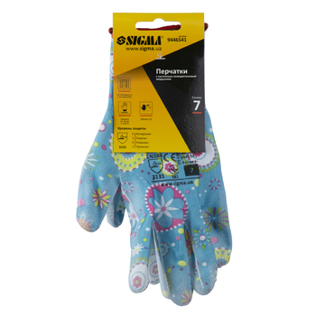 Рукавички трикотажні з частковим ПУ покриттям р7 (сині манжет) SIGMA (9446541) призначені для захисту рук від механічних впливів.