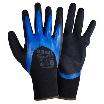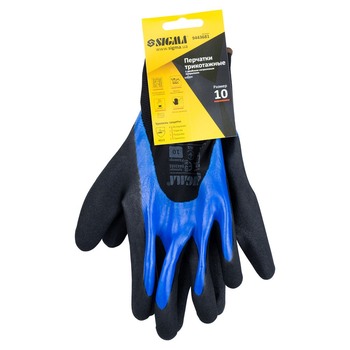Рукавички трикотажні з подвійним нітриловим покриттям р10 (синьо-чорні манжет) SIGMA (9443681) призначені для захисту від механічних впливів, жиру і масла. Оптимально підходять для робіт, де необхідна висока точність. Завдяки довговічності нітрилового покриття особливої популярності рукавички придбали на СТО, шиномонтажних майстерень.