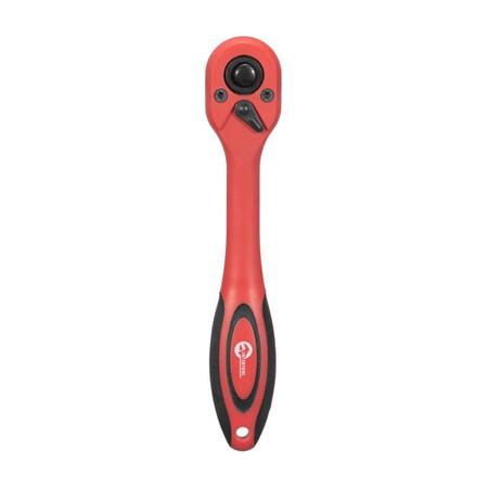 Кнопка на верхній частині тріскачки приводить фіксуючу кульку в дію і ви легко можете міняти головки, при цьому насадки міцно сидять на посадковому квадраті та не спадають. Тріскачка з храповим механізмом має зручний перемикач напрямку руху. Вигин ручки дозволяє не зачіпати поверхні інших деталей, які можуть опинитися під нею, що дуже зручно для роботи в обмеженому просторі.