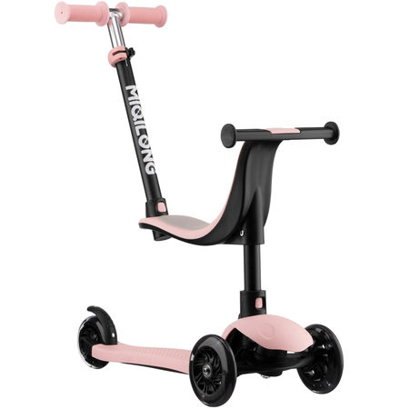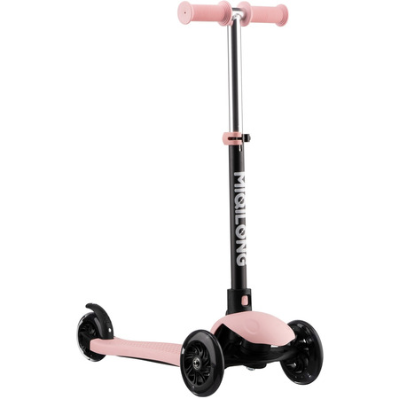 Самокат Miqilong Alamo в рожевому кольорі - це стильний та яскравий вибір для дівчаток, які люблять кататися і при цьому хочуть мати елегантний та красивий вид. Особливості цього самоката можуть включати: