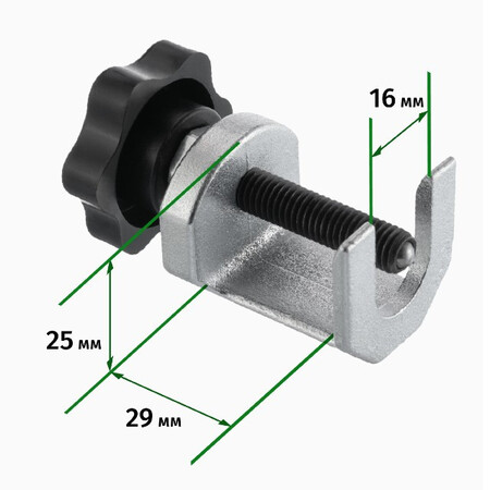 Представляет собой П-образную струбцину с винтовым стержнем и "баранчиком" для удобной закрутки. Устройство прочное, содержит минимум деталей и выполнено из качественной инструментальной стали.