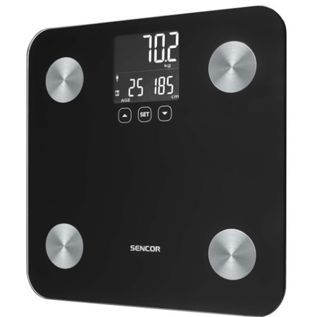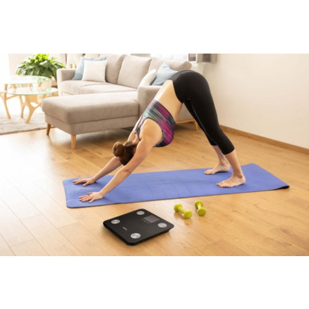 Персональные фитнес весы. Весы измеряют не только вес, но и параметры тела и их анализируют. Весы также легко контролировать с помощью сенсорных кнопок и легкого чтения дисплея с подсветкой. Весы привлекут внимание благодаря дизайну со стеклянной платформой для взвешивания. Это делает вес идеальным для любой комнаты, их легко чистить и обслуживать. Имеет большой ЖК-дисплей с подсветкой. Совмещение стекла и поверхности из нержавеющей стали для легкого обслуживания.