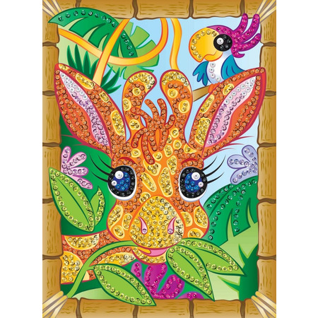 Smoogles - яркая коллекция блестящих картин с милыми животными для детей от 6 лет. Яркий жираф с большими добрыми глазами. Создать удивительное изображение очень легко. Нужно прикрепить с помощью шпилек цветные пайетки к изображению-трафарета на полистирольной основе.
