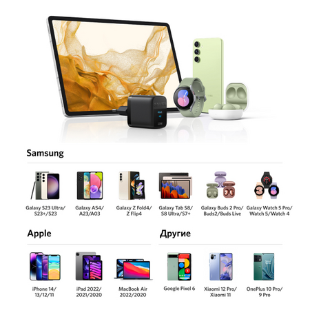 Сетевое зарядное устройство Anker 312 поддерживает сверхбыструю зарядку Samsung 2.0 мощностью 25 Вт. Теперь вы можете полностью зарядить свой Galaxy S22 менее чем за 1,5 часа.