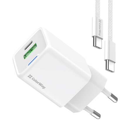 Сетевое зарядное устройство 30W PD Port PPS USB (Type-C PD + USB QC3.0) – это современный, компактный и мощный адаптер, оснащенный двумя портами USB и PD, что позволит одновременно заряжать 2 устройства. Адаптер поддерживает передовые технологии быстрой зарядки: Xiaomi Turbo Charge 27W, Apple Fast Charge, PD 2.0&3.0 PPS 30W, Huawei FCP, Quick Charge 2.0/3.0/4.0+, Samsung SFC/AFC с выходной мощностью до 30 Вт. Компактный размер и эргономичный дизайн делают это зарядное устройство идеальным для повседневного использования и путешествий. Благодаря технологии GaN (нитрид галлия) устройство стало более легким, меньшим и эффективным по сравнению с обычными адаптерами. Colorway GaN Mini почти не нагревается при работе, потребляет меньше энергии и значительно ускоряет зарядку устройств. Интеллектуальная микросхема USB Auto ID автоматически распознает подключенное устройство и подбирает оптимальное напряжение и силу тока до 3A, что обеспечивает максимально эффективную зарядку. Устройство совместимо с большинством современных брендов смартфонов, планшетов и других гаджетов. Дополнительно адаптер оснащен системой многоуровневой защиты: от короткого замыкания, перегрева, перенапряжения и перегрузок по току. Корпус, изготовленный из огнестойкого ABS-пластика, отличается стойкостью к царапинам и ударам, обеспечивая надежность и длительный срок службы даже при интенсивном использовании. Благодаря компактным размерам и малому весу устройство легко помещается в карман или сумку, что делает его удобным для транспортировки. В комплекте прилагается кабель Type-C – Type-C, который обеспечивает быструю передачу тока и отличную совместимость с современными гаджетами. Colorway GaN Mini – идеальный выбор для быстрой и безопасной зарядки ваших устройств как дома, так и во время путешествий.