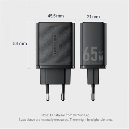 Сетевое зарядное устройство Vention GaN III PD 65W QC3.0 5A Black (FERB0-EU)