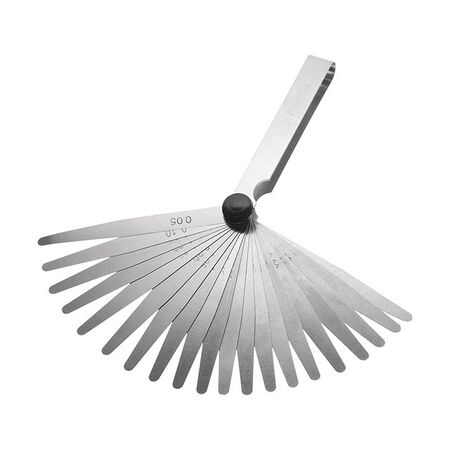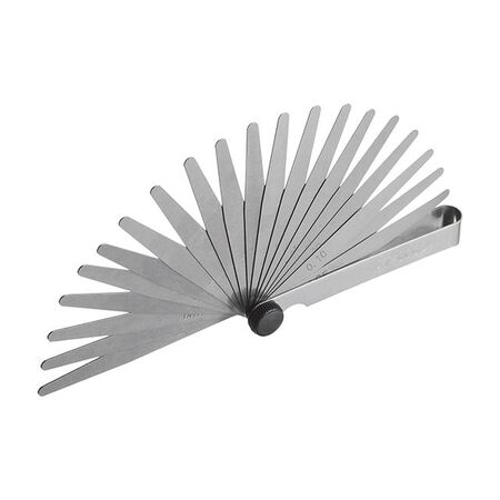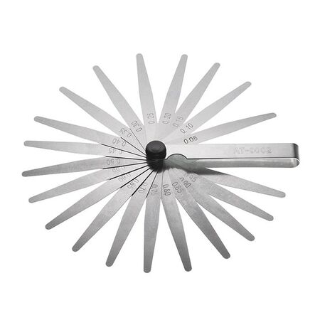 Щуп INTERTOOL AT-0002 призначений для точного вимірювання зазору між поверхнями, що мають криволінійну форму. Щупи являють собою сталеві пластини. Всього - 20 сегментів товщиною від 0,05 до 1,0 мм.