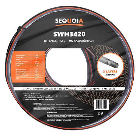 Диаметр шланга 3/4 дюймов; Длина шланга 20 м; Количество слоев 3
