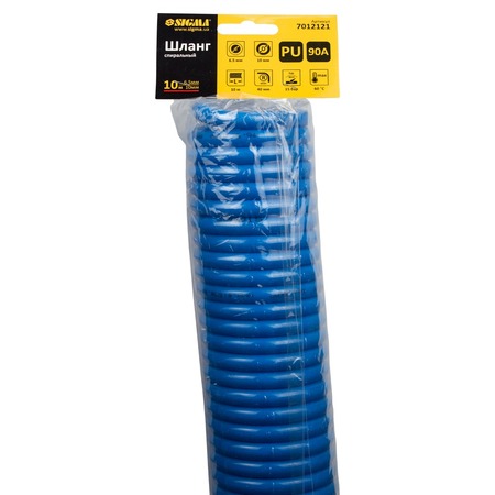 Шланг спіральний поліуретановий (PU) 10м 6.5×10мм SIGMA (7012121) використовується для передачі повітря в пневматичних системах стандартного тиску. Має хорошу стійкість до механічних впливів (перегини, здавлювання, скручування) і швидко відновлює свою первинну форму після зняття механічного впливу. Шланг не схильний до гідролізу і має хорошу стійкість до впливу озону і мікроорганізмів.