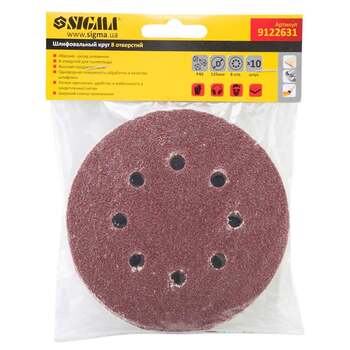 Шліфувальний круг 8 отворів Ø125мм P40 (10шт) SIGMA (9122631) призначений для сухого високошвидкісного шліфування. За властивостями є багатофункціональним абразивом. В основному застосовується в автомобільній промисловості, деревообробці і металообробці.