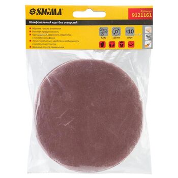 Шліфувальний круг без отворів Ø125мм P240 (10шт) SIGMA (9121161) призначений для сухого високошвидкісного шліфування. Невеликий діаметр круга дозволяє проводити обробку в важкодоступних місцях, робить його неперевершеним по легкості роботи і точності обробки. За властивостями є багатофункціональним абразивом. В основному застосовується в автомобільній промисловості, деревообробці і металообробці.