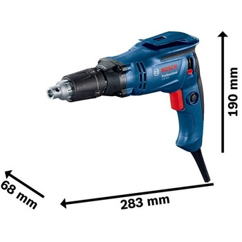Висока частота обертання двигуна 5000 об/хв для швидшого загвинчування і, відповідно, швидкого завершення роботи. Використовуйте із шурупами для гіпсокартону діам. до 4 мм у двох шарах гіпсокартону та саморізами діам. до 6 мм для аркуша металу 1,5 мм. Реверсивний обмежувач довжини дозволяє відгвинчувати без зняття обмежувача для зручності та безпеки. Встановіть гвинтовий автоподатчик Bosch для збільшення продуктивності щонайменше на 50 %.