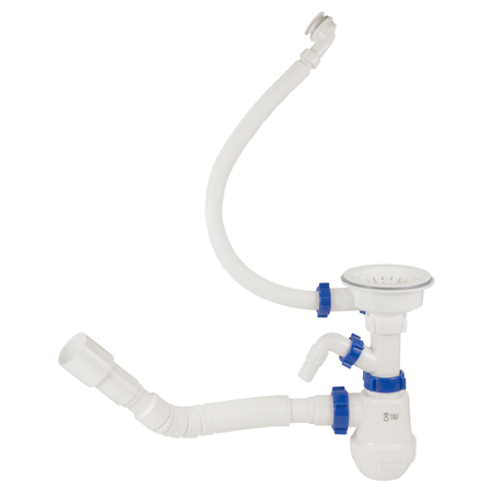 Сифон для кухонної мийки з пластиковим випуском 3½" виводом під пральну машину круглим переливом і гнучким відведенням Ø40/50мм (білий) TAU (9842821)