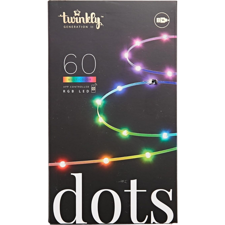 Smart LED гірлянда Twinkly Dots Lights RGB 60 Gen II – це розумна LED гірлянда для створення атмосферного освітлення. Вона оснащена 60 RGB світлодіодами, які дозволяють створювати різноманітні колірні ефекти та комбінації. Гірлянда підтримує керування через мобільний додаток, що дозволяє налаштовувати освітлення, вибирати кольори та режими роботи за допомогою смартфона. Кабель гірлянди прозорий, що дозволяє йому добре поєднуватися з інтер'єром та практично непомітний при встановленні. Цей продукт створить затишну атмосферу і додасть веселих світлових ефектів до вашого будинку чи офісу.