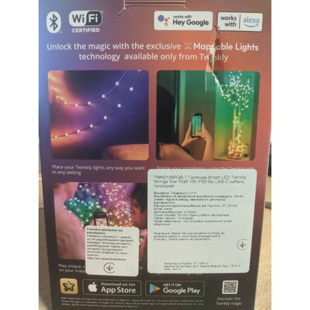 Smart LED гірлянда Twinkly Strings USB 100 Star-shaped RGB LEDs - це чудовий варіант для створення атмосфери свята і розіграшу світла у вашому будинку або на вечірці.