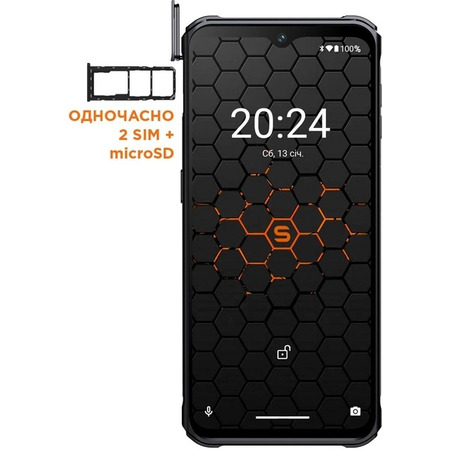 На правой боковой грани X-TREME PQ56 расположены клавиша питания со встроенным сканером отпечатка пальца и клавиша регулировки громкости, на левой боковой грани – клавиша быстрого доступа и отсек для SIM-карт и карты microSD. В отсеке хватит места сразу на 2 SIM-карты и одну карту microSD, чтобы вам было легче экономить на звонках к разным операторам и не пришлось жертвовать дополнительной памятью. А клавишу быстрого доступа можно настроить на три различных действия с помощью нажатия, нажатия и удержания и двойного нажатия: позволяет быстро открывать приложения и включать ярлыки, например фонарик. На нижней грани под резиновой заглушкой спрятался разъем USB Type-C для сопряжения с зарядным устройством, но разъема для наушников у X-TREME PQ56 нет, поэтому в комплекте вы найдете подключаемую к Type-C гарнитуру.