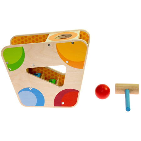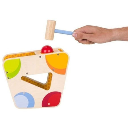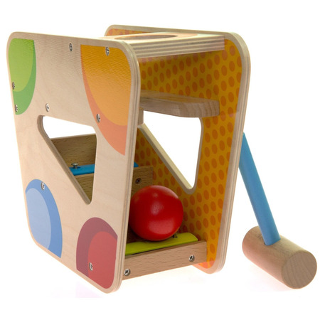 Дитячий дерев’яний сортер з ксилофоном німецького виробника іграшок goki – це справжня музична знахідка для найменших. Пристрій складається з яскравої дерев’яної форми, молоточка і червоної кулі. Щоб почути мелодію ксилофону, необхідно покласти кулю у отвір зверху і, приклавши зусиль, стукнути по ній молоточком. Після цього куля впаде в жолоб, скотиться і пройдеться музичними сходами сортера. «Музична куля» - це чудова гра для дітей, що допоможе розвинути координацію, сприйняття кольору та звуку, логічність та послідовність дій.