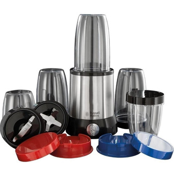 У комплект блендера входить 3 великі (700 мл) та дві маленькі (350 мл) ємності, ніж для подрібнення і ніж для змішування, 2 кільця для губ, 2 зручні кришечки для вживання на ходу, 2 кришечки для зберігання і одна шейкер-кришечка. Усі ці деталі можна мити в посудомийці.