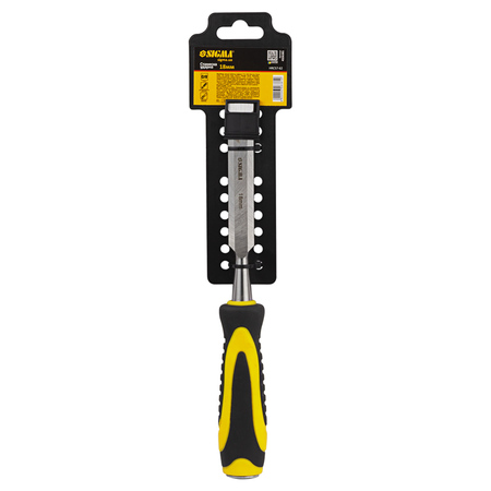 Стамеска ударна 18мм двокомпонентна рукоятка CrV SIGMA (4326381) з обгумованою ручкою використовується для вибірки гнізд і пазів, вирізання отворів в деревині твердих і м'яких порід з використанням молотка або киянки. Виготовлена з високоякісної хромованадієвої сталі, посилена і ударостійка, що гарантує високий комфорт роботи.