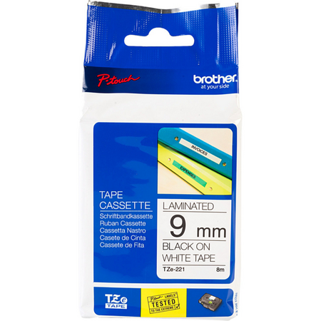 Стрічка Brother для принтерів етикеток ламінована, чорний на білому 9 мм 8 м (TZE221)