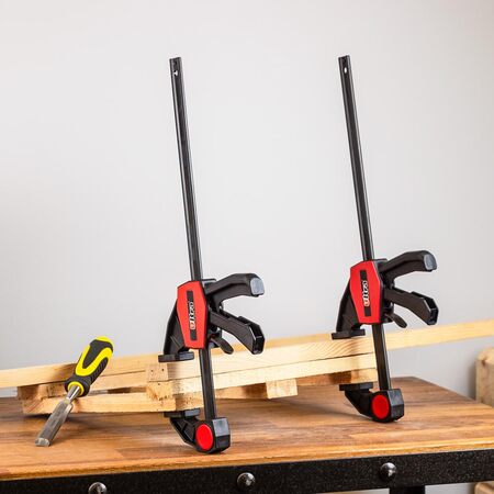 Струбцина швидкозатискна 300×60мм посилена ULTRA (4243132) застосовується для фіксації та утримання заготовок при виконанні складальних, столярних та слюсарних робіт. Швидкозатискна (автоматична) струбцина має шину, на якій фіксується дві губки, одна з яких є рухомою.