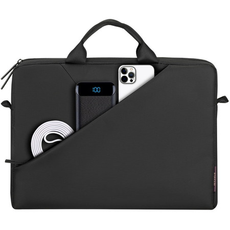 Сумка выполнена из плотного синтетического материала и имеет утолщенные стенки для лучшей защиты ноутбука от случайных ударов и царапин, а также от пыли и влаги.