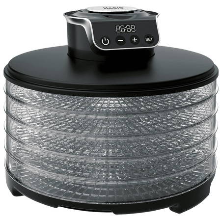 Электросушка MG-353 – легкий и удобный способ высушить овощи, фрукты, ягоды, грибы, травы или мясо, а также максимально сохранить их полезные ингредиенты и витамины. Устройство имеет пять вместительных лотков из пластика. Управление механическое: на корпусе есть кнопка включения и ступенчатый регулятор температурных режимов на 8 позиций, позволяющий выбрать нагрев воздуха от 35 до 70° С. Сушка оборудована системой защиты от перегрева – при чрезмерном росте температуры нагревательный элемент автоматически отключается.