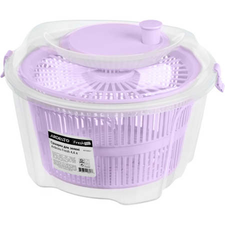 Сушка для салату Ardesto Fresh лилового кольору об'ємом 4,4 літра (AR1603LP) - це зручний і практичний кухонний прилад, призначений для видалення зайвої вологи з овочів та зелені для салатів. Ця сушка відмінно підходить для миття, сушіння і зберігання різних видів овочів і зелені.