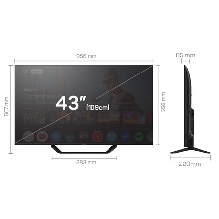 Tesla 43E655BUS отличается довольно небольшим размером (956x556x86 мм без подставки) и весом (6.4 кг), что позволяет легко транспортировать и установить на любое удобное место. Устройство с диагональю экрана 43" чаще всего используют для установки на кухню. Благодаря минималистичному дизайну и черному цвету корпуса этот прибор может подойти под любой интерьер.