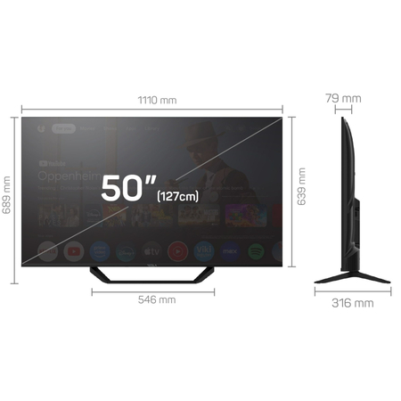 Устройство имеет 50-дюймовый экран, что позволяет погрузиться в увлекательный контент с удивительным уровнем детализации. Телевизор создан в современном и элегантном дизайне, гармонично дополнит интерьер любого помещения. Тонкие рамки максимизируют площадь просмотра, позволяя наслаждаться каждым моментом без отвлекающих элементов.