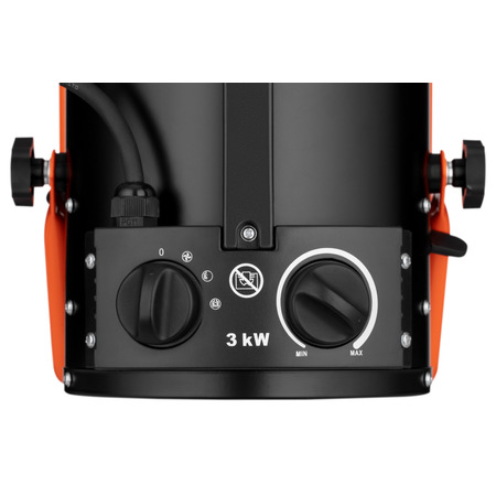 Нагревающаяся пушка 2E AHT3000 почти мгновенно благодаря нагревательному элементу из нержавеющей стали мощностью 3кВт, которой достаточно для обогрева помещения площадью 30 м2. Мощность можно регулировать – имеющийся встроенный термостат.