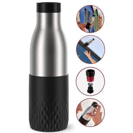 Термобутылка плотно закрывается крышкой, обеспечивая 100% герметичность, поэтому ее можно свободно переворачивать и класть набок, поставить на сиденье автомобиля или в сумку.