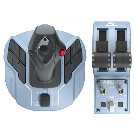 Встречайте первый комплект Thrustmaster Civil Aviation (TCA), включающий в себя боковую ручку управления и блок рычагов — эргономичные реплики органов управления хорошо известного авиалайнера Airbus A320.
