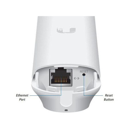 Длинна корпуса UniFi ac Mesh составляет всего лишь 20 см. Устройство имеет две съемные антенны, привинчивающиеся к разъемам расположенным сверху корпуса. Несмотря на компактность UniFi Mesh получила мощную двухдиапазонную радиочасть с независимыми модулями, позволяющую использовать одновременна обе полосы частот. При этом обеспечивается пропускная способность до 300 мб/сек для диапазона 2.4 Ггц, на котором нет поддержки новейшего WiFi 802.11 ac и до 867 мб/сек в диапазоне 5 ггц с использованием стандартов 802.11 ac. Использованная в UniFi Mesh антенная кофигурация – это хорошо знакомая всем классическая схема MIMO 2X2, с двумя пространственными потоками передачи данных. Дальность действия точки доступа достигает 183 метров. Корпус точки доступа всепогодный, и обеспечивает прекрасную защиту как от механических воздействий так и от пыли, влаги, и колебаний температур. Несмотря на это дизайн устройства очень хорошо продуман - UniFi ac Mesh прекрасно смотрится в любом интерьере, что позволяет использовать устройства даже в помещении. Питание точки доступа организованно традиционно для продукции Ubiquiti Networks через гигабитный сетевой порт по технологии 802.3af PoE, которая позволяет передавать питание по единственному Ethernet кабелю, без использования дополнительной линии электроснабжения. Специальная конструкция основания позволяет крепить UniFi Mesh как на трубчатое металлическое основание, так и на стену, в зависимости от того какой тип установки планируется пользователем. Благодаря прочному, всепогодному корпусу точка доступа может использоваться вне помещений при температурах от 30 до + 70 градусов.