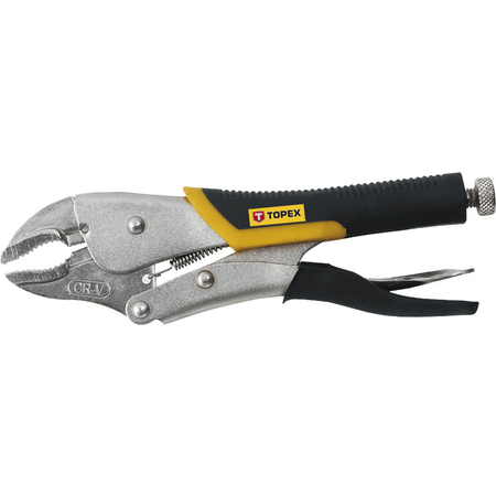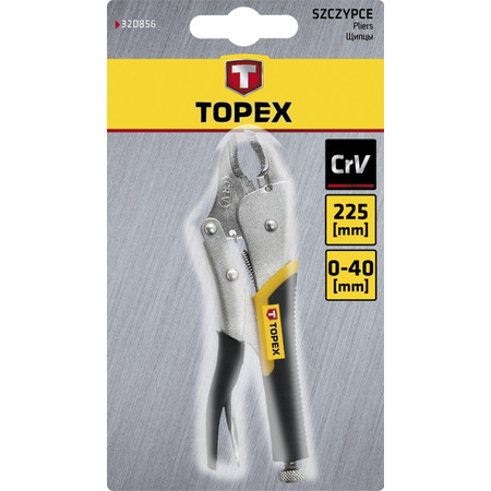 Кліщі затискні універсальні TOPEX довжиною 225 мм, з робочим діапазоном 0 - 40 мм. Храповий механізм забезпечує постійний тиск. Виготовлені з високоякісної хромованадієвої сталі, що забезпечує довгий термін служби інструменту. Ергономічна пластикова рукоятка, покрита антиковзаючим матеріалом, гарантує високий комфорт роботи. Бренд TOPEX призначений для домашніх майстрів.