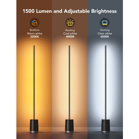 Торшер розумний Govee H6072 Lyra - це сучасний торшер з інтегрованими smart-функціями, які дозволяють регулювати яскравість та колір освітлення за допомогою WI-FI або Bluetooth зручним для вас способом. Він забезпечує потужність світлового потоку на рівні 1500 люмен, що забезпечує яскраве та різноманітне освітлення. Також він підтримує RGBICWW - він кольору (червоний, зелений, синій, холодний і теплий білий) для створення різних світлових ефектів і атмосфери.Цей торшер має сучасний дизайн в сірому кольорі, що додає витонченості і сучасності вашому інтер'єру. Також, він може працювати як окремо, так і в поєднанні з іншими смарт пристроями для створення розумної домашньої системи освітлення. Завдяки можливостям підключення через WI-FI та Bluetooth, ви можете керувати торшером за допомогою смартфону, голосового помічника або інших смарт-пристроїв. Також варто відзначити, що в цьому торшері є можливість додатково підключити динамік для програвання музики, яка залишить ваші вечори більш приємними.