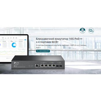 TL-SX3206HPPУправляемый коммутатор JetStream уровня 2+ c 4 портами PoE++ 10 Гбит/с и 2 портами SFP+ 10 Гбит/с