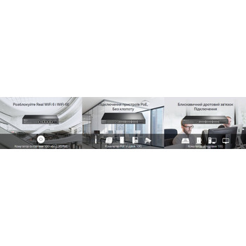- PoE++ с бюджетом 200 Вт1: четыре порта 10 Гбит/с с поддержкой стандарта PoE++ (802.3af/at/bt) и бюджетом до 60 Вт на порт создадут идеальные условия для подключения точек доступа Omada Wi-Fi 62.