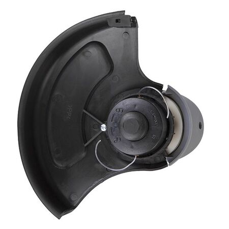 Кожух тримера виготовлений з ударостійкого пластику і захищає користувача від викиду трави, надійно закриваючи різальну волосінь з котушкою.