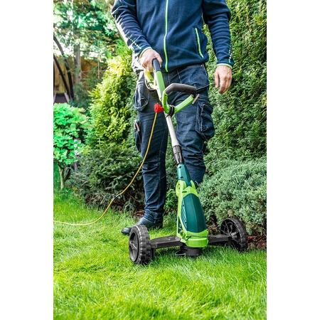 Триммер садовый электрический Verto 52G552 подходит для ухода за газоном и кустами в саду или огороде.