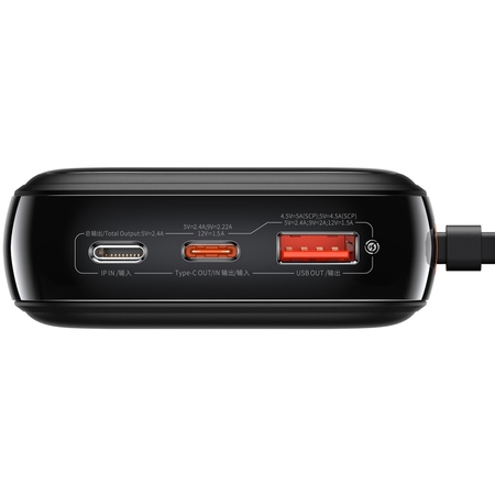 Внешний аккумулятор (Power Bank) Baseus Qpow 20000mAh 20W, 1xLightning, 1xUSB, 1xType-C In/Out PD3.0, QC3.0, встроенный разъем Lightning, черный