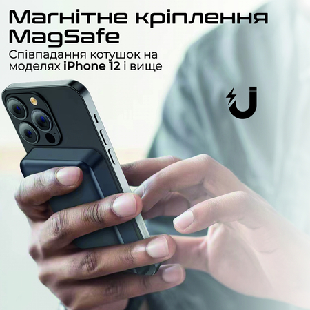 - Магнитный крепеж MagSafe: Обеспечивает идеально точное сочетание катушек на моделях iPhone 12 и выше, что гарантирует зарядку с максимальным комфортом и эффективностью.
