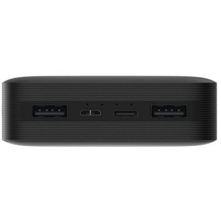 Панель слотов паувербанка Xiaomi Redmi 20000 mAh использует два входных порта (MicroUSB и USB Type C), а также два выходных (USB Type A). Такое сочетание позволит одновременно заряжать смартфон и планшет, а также удобно восполнять потраченный заряд самого портативного девайса. Максимальный предел мощности соответствует уровню 18 Вт.