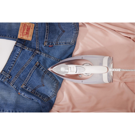 Длинный шнур питания позволяет легко перемещаться по комнате, найти удобное гладильное место и даже смотреть телевизор или общаться с семьей во время работы.