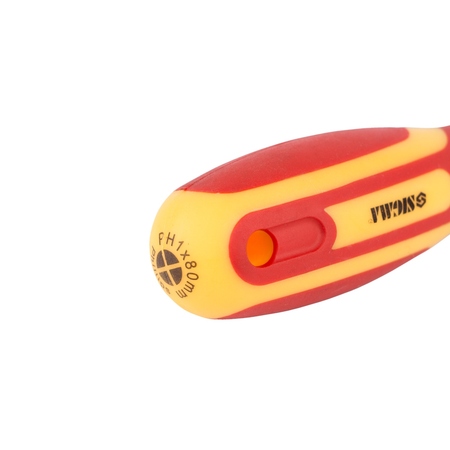 Викрутка діелектрична хрестова PH1×80 мм 1000 В від виробника SIGMA (4008141) є інструментом спеціального призначення, який може використовуватися у роботах з електричними мережами та проводами під напругою до 1000 В. Викрутка має хрестоподібний викрутковий наконечник з розміром PH1 і довжину 80 мм, що дозволяє працювати з шурупами з крестоподібним канавкою. Виготовлена з високоякісної хрому-ванадієвої сталі (CrV), що забезпечує міцність та довговічність інструменту. Діелектрична ізоляція викрутки забезпечує безпеку користувача при роботі з електричними пристроями. Викрутка SIGMA (4008141) може бути надійним і безпечним інструментом для професіоналів, які працюють у сфері електрики та в умовах, де потрібен захист від електричного струму.