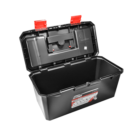 Ящики для инструмента STARK Classic - универсальный кейс с пластиковыми застежками. На крышке размещен удобный органайзер для хранения метизов, дюбелей, мелких строительных и бытовых элементов. Идеально подойдет организации инструмента дома, на даче, в гараже.