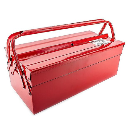 Ящик для інструментів INTERTOOL HT-5043 дворівневий металевий, пофарбований. Складається з одного великого та двох малих боксів. Довжина ящика - 450 мм. Оснащений двома металевими ручками для перенесення. Зручна система доступу до вмісту - малі бокси роз'їжджаються в сторони, забезпечуючи повний огляд внутрішнього простору.